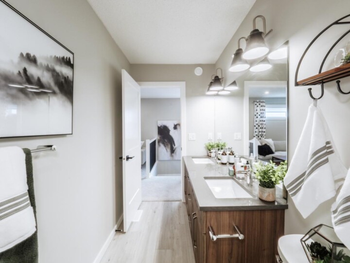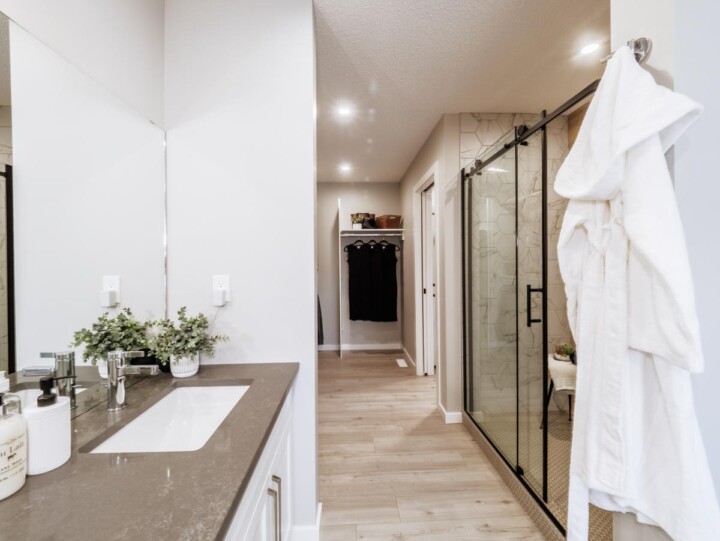 Everything about the Ruby is spacious! Walk through the foyer and into the large open great room, watch how it flows to your corner kitchen and dining area. Enjoy the view of your backyard as you wash the dishes and walk right through to the deck from your dining room. Upstairs you'll find secondary rooms at the front of the house, a central bonus room, and a large primary suite towards the back of the home. Your primary suite includes a large three-piece ensuite with a water closet. Through your ensuite you will discover a large walk-in closet that leads directly into your upstairs laundry room.